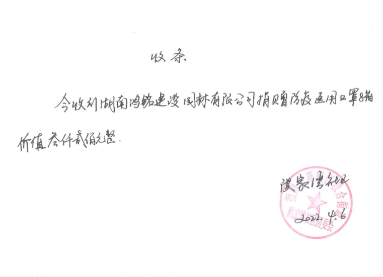 为积极应对新冠肺炎疫情,守护基层一线工作人员生命安全和身体健康,4月6日,湖南鸿铭建设园林有限公司代表一行人来到衡阳市洪家湾社区,向社区捐赠防疫医用口罩等防疫物资一批。