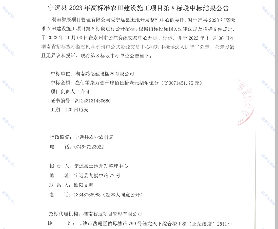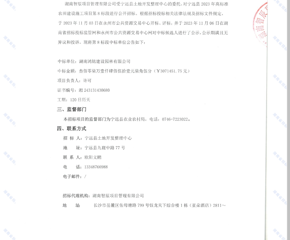 > 宁远县2023年高标准农田建设施工项目第8标段