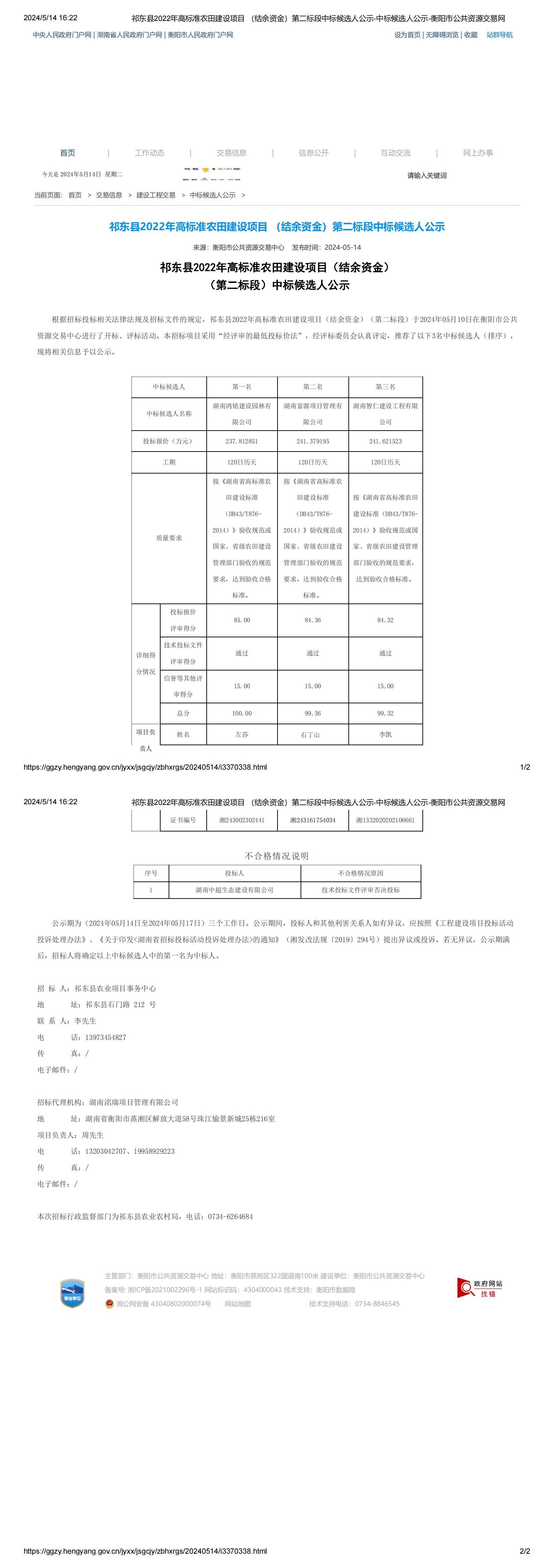 > 祁东县2022年高标准农田建设项目 (结余资金)第二标段