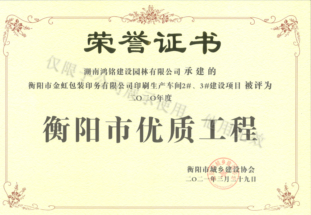 2020年度衡阳市优质工程-