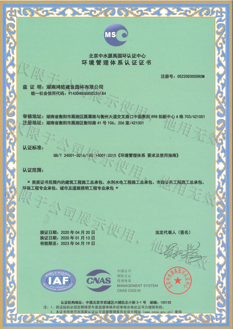 环境管理体系认证证书